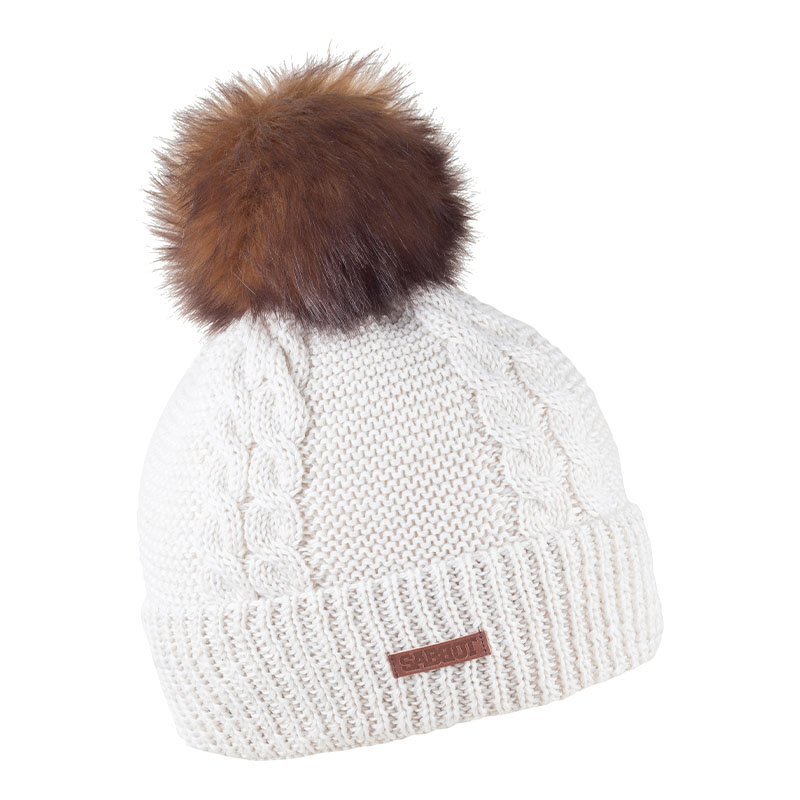 Zimní čepice s kožešinovou bambulí a kontrastním pruhem, BELA