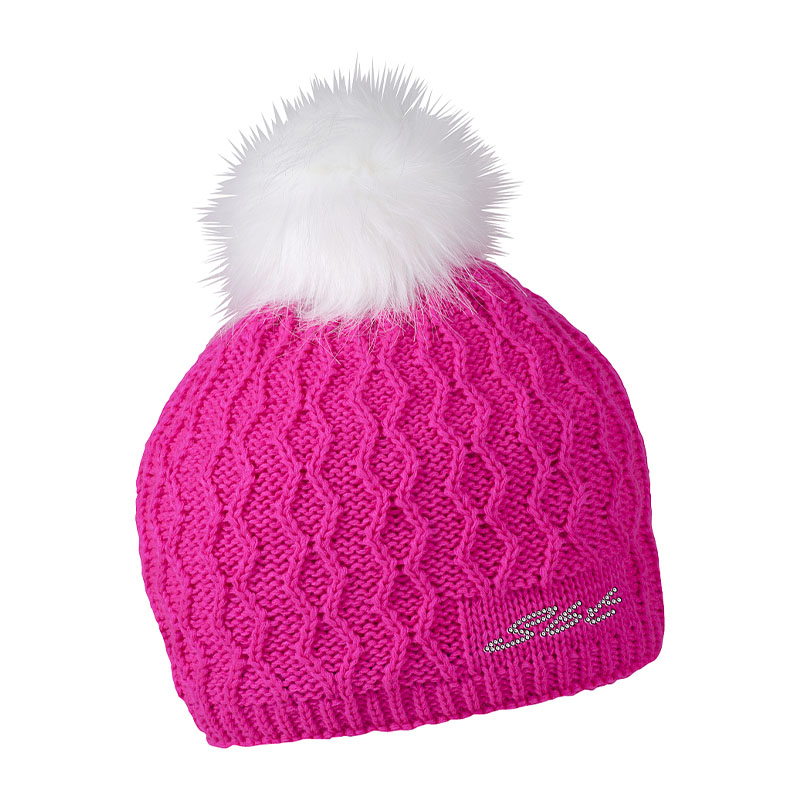Zimní čepice s kožešinovou bambulí a kamínky, SIGRID