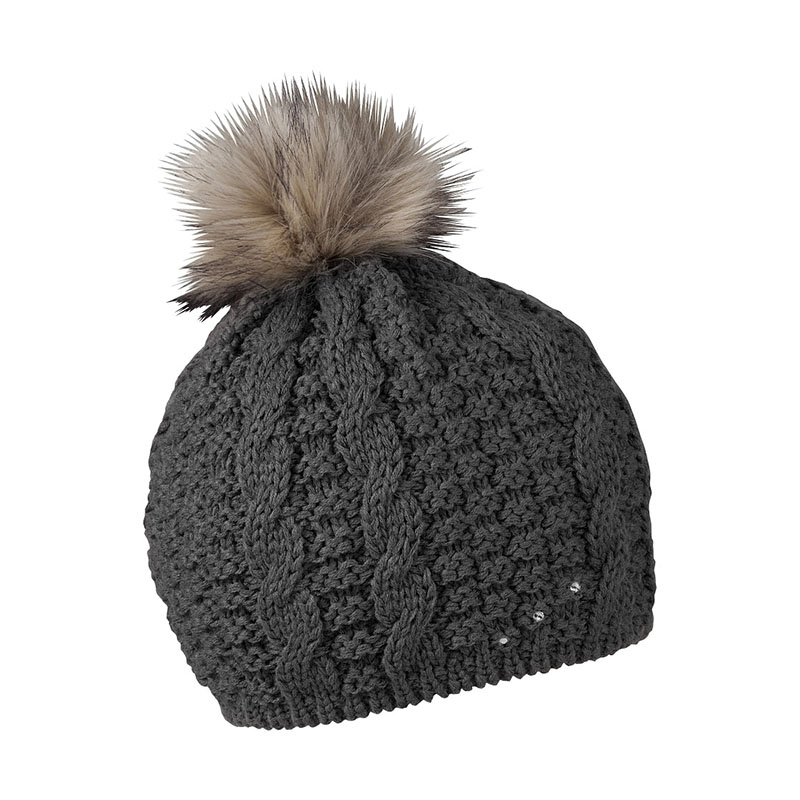 Zimní čepice s kožešinovou bambulí a kamínky, NATALIE