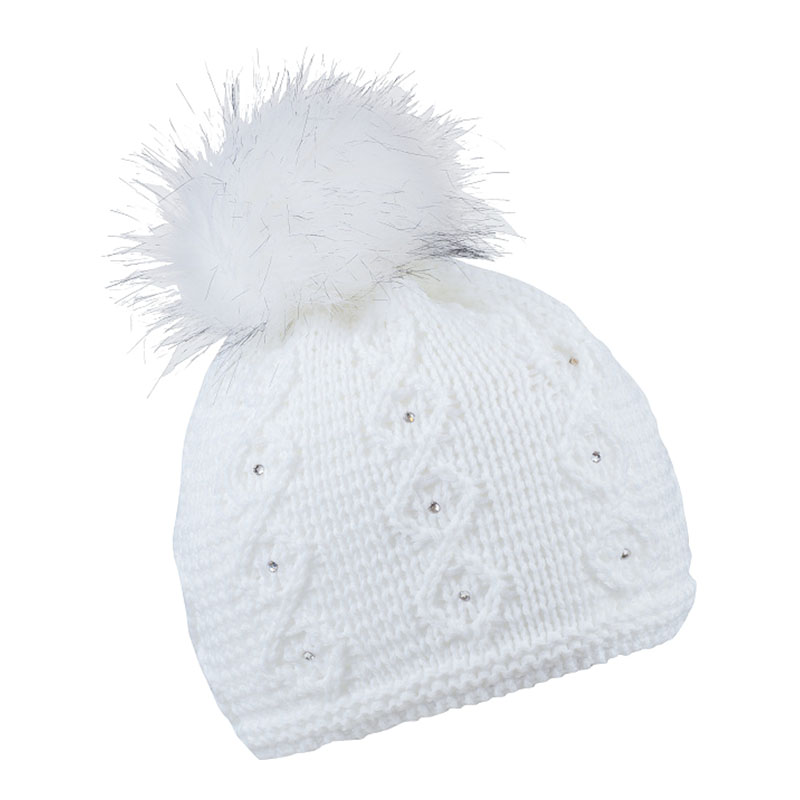 Zimní čepice s kožešinovou bambulí a kamínky, NATALIE
