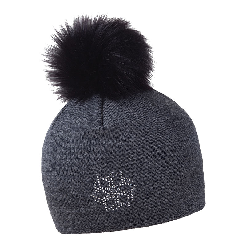 Zimní čepice s kožešinovou bambulí a kamínky ve tvaru vločky, RENATA
