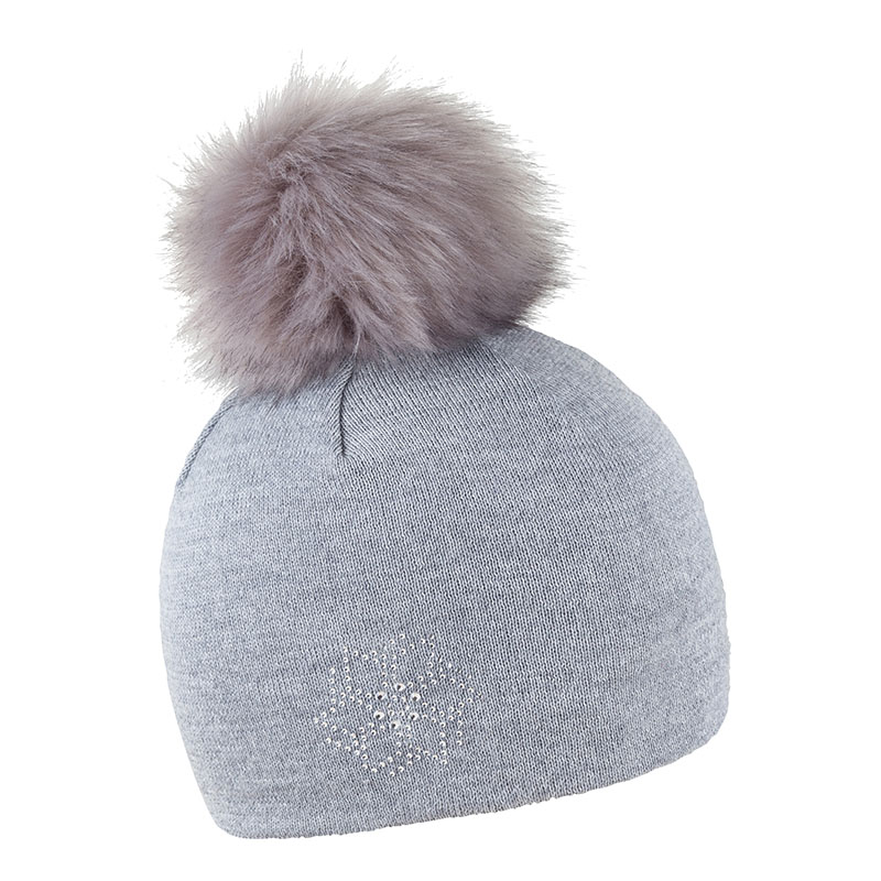 Zimní čepice s kožešinovou bambulí a kamínky ve tvaru vločky, RENATA