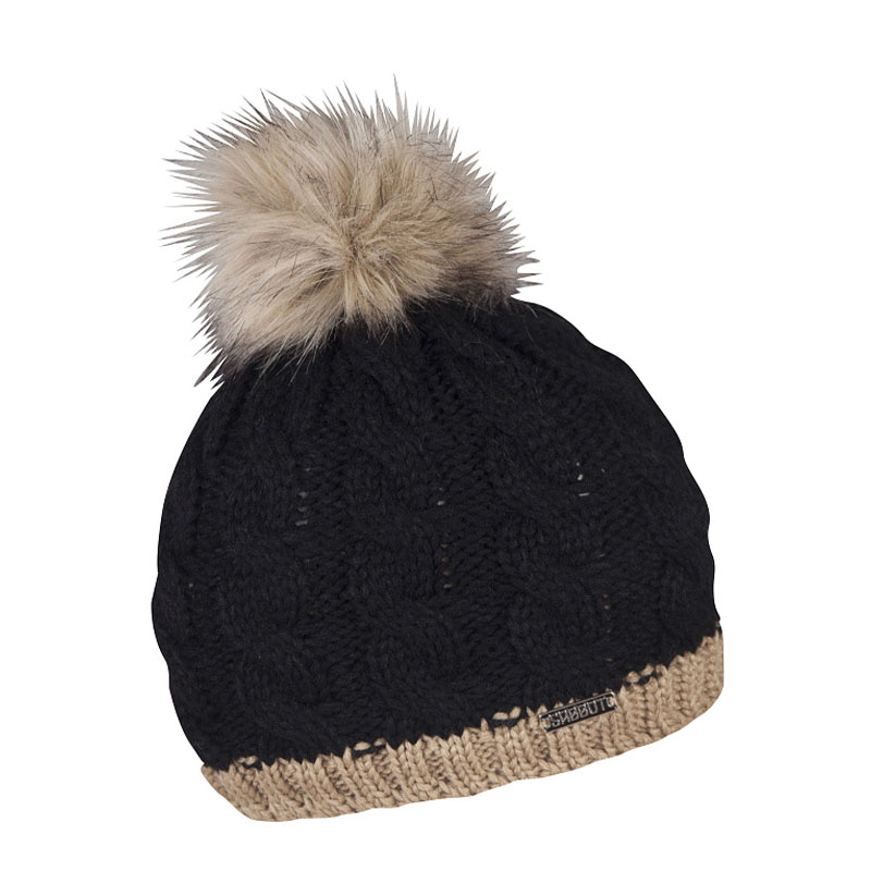 Zimní čepice s kožešinovou bambulí a kontrastním lemem, ANDREA
