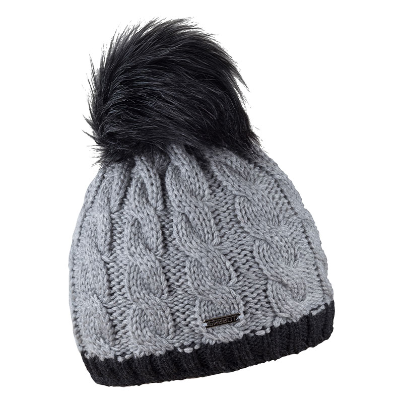 Zimní čepice s kožešinovou bambulí a kontrastním lemem, ANDREA