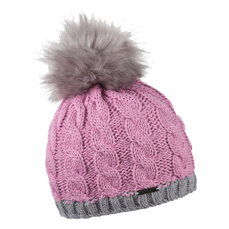 Zimní čepice s kožešinovou bambulí a kontrastním lemem, ANDREA