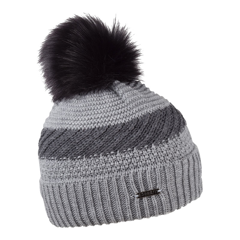 Zimní čepice s kožešinovou bambulí a kontrastním pruhem, BELA