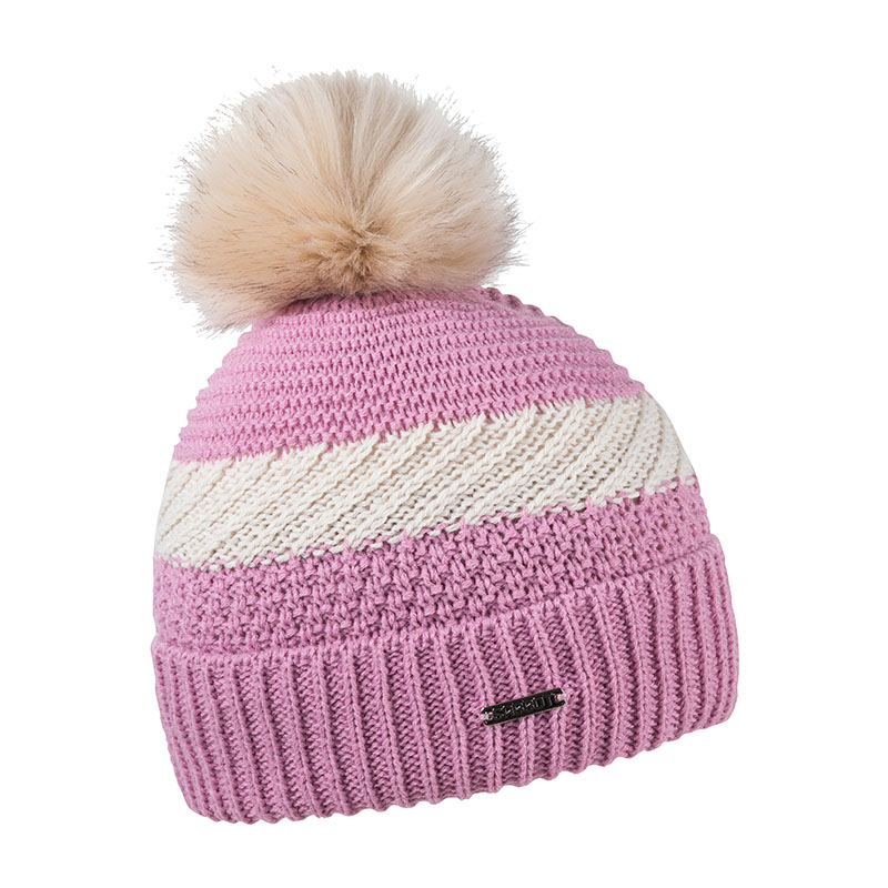 Zimní čepice s kožešinovou bambulí a kontrastním pruhem, BELA