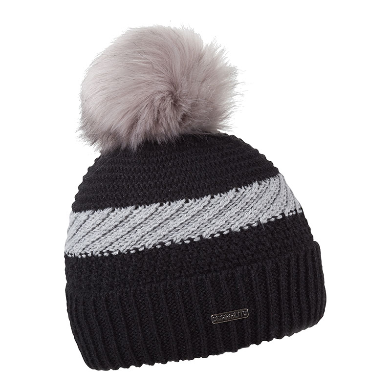 Zimní čepice s kožešinovou bambulí a kontrastním pruhem, BELA