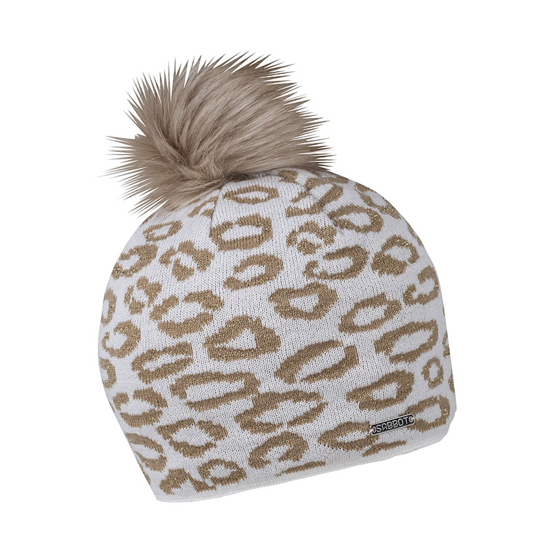 Zimní čepice s kožešinovou bambulí a leopardním vzorek, SASKIA