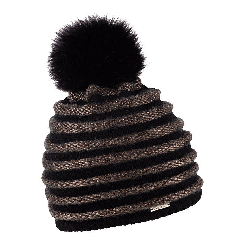 Zimní čepice s kožešinovou bambulí a výraznými pruhy, PAVLA