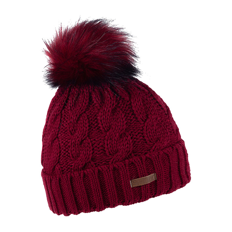 Zimní čepice s kožešinovou bambulí a kontrastním pruhem, BELA