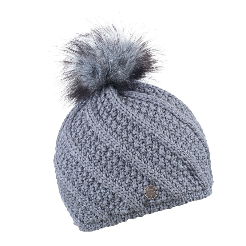 Zimní čepice s kožešinovou bambulí, efektní pletení, MARTA