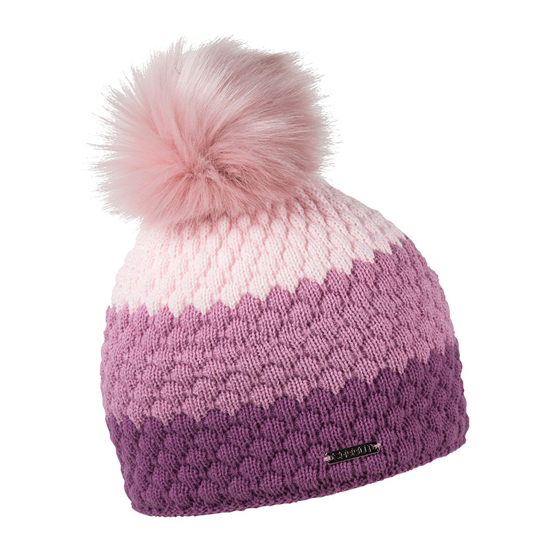 Zimní čepice s kožešinovou bambulí, efektní pletení, OLGA