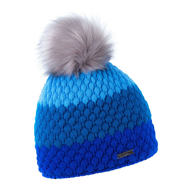 Zimní čepice s kožešinovou bambulí, efektní pletení, OLGA