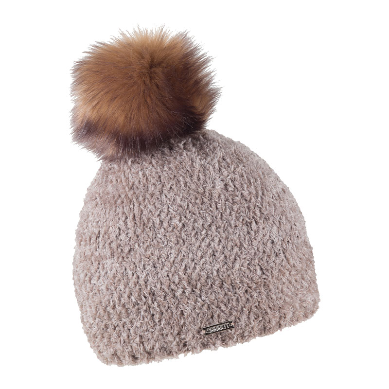 Zimní čepice s kožešinovou bambulí, luxusní materiál extra jemná merino vlna, ROMANA