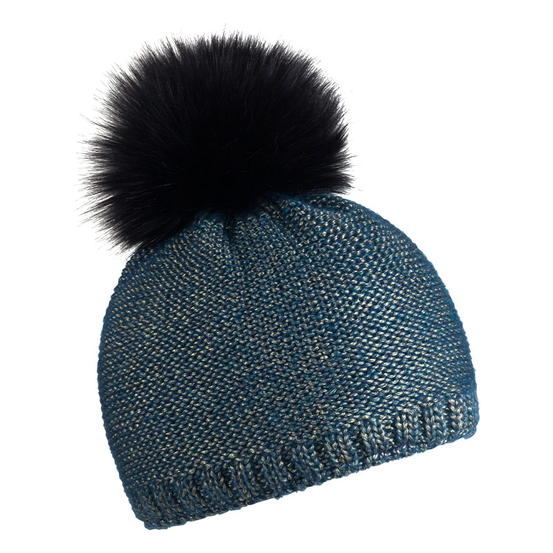 Zimní čepice s kožešinovou bambulí, luxusní materiál s příměsí mohéru, IDA