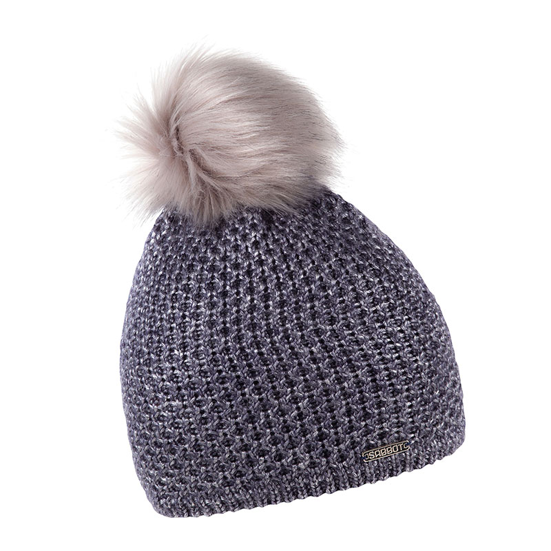 Zimní čepice s kožešinovou bambulí s luxusního materiálu s lesklým efektem, KAMILA