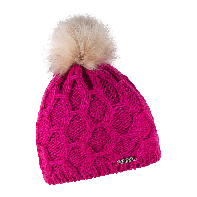 Zimní čepice s kožešinovou bambulí a decentním logem SABBOT s kamínků, VERONIKA
