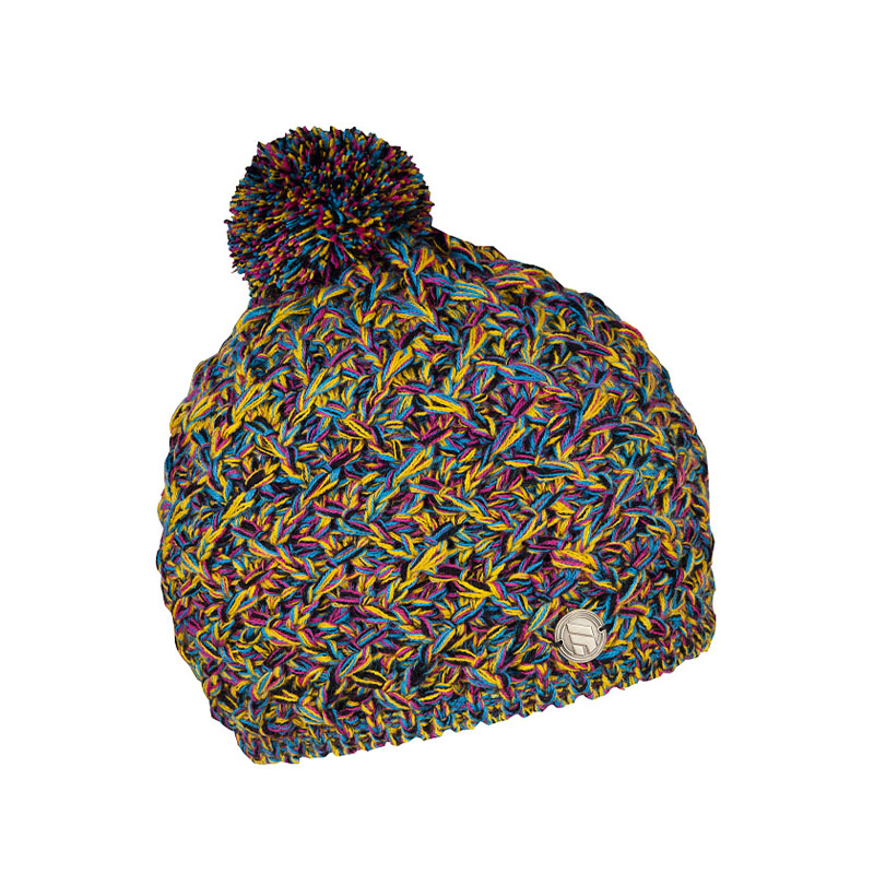 Zimní čepice s bambulí, krásné barevné pletení, JOHANA